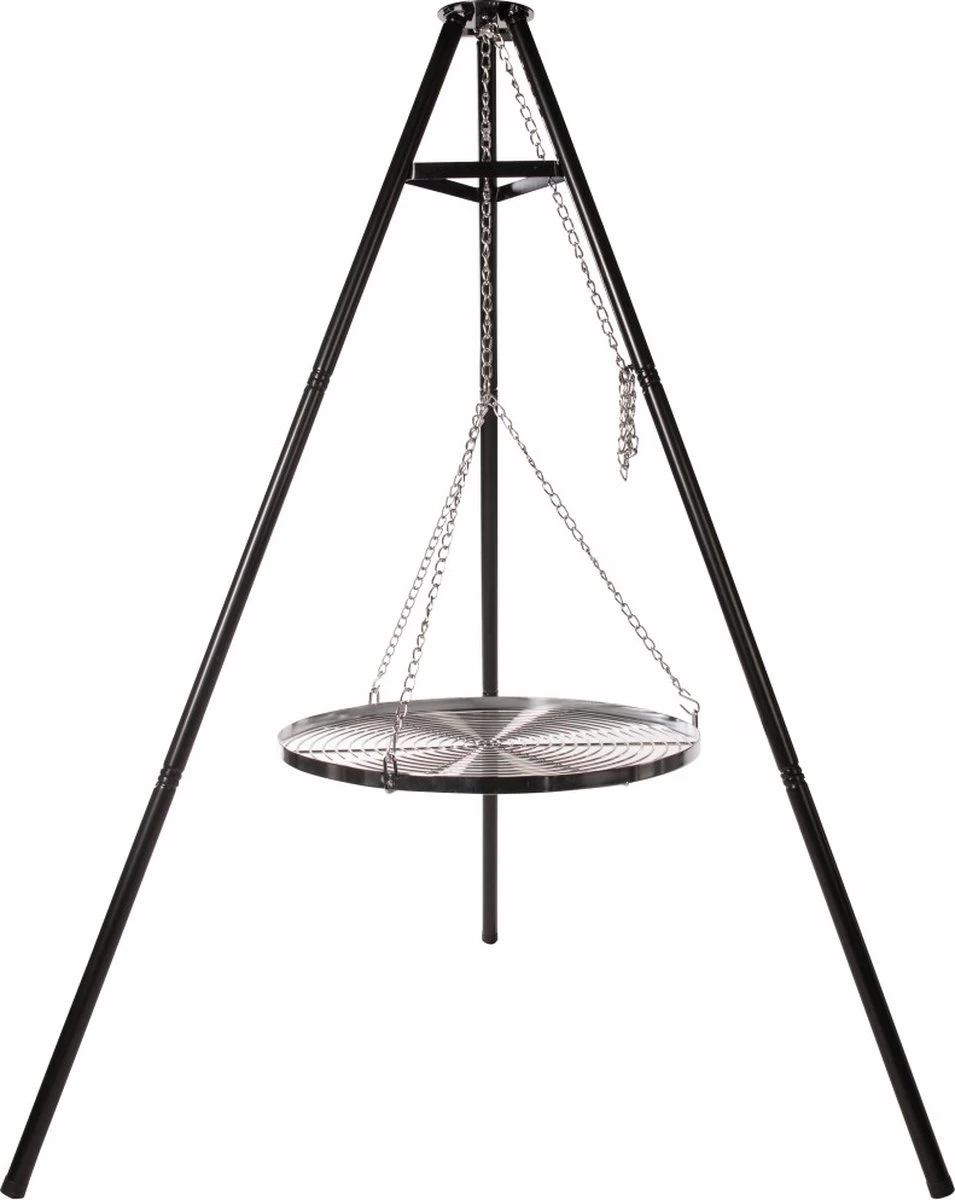 Tover je vuurschaal met deze tripod van BBGrill om tot je eigen barbecue. Schuif wat stoeltjes aan of rol een picknickkleed uit en zorg voor een warm en smaakvol moment. De verchroomde grill is voorzien van een stevige ketting, waarmee je ook de hoogte van de grill aan kan passen. Zo heb je ook de ruimte om je vlees- of vis warm te houden, wanneer het al gaar is. Denk er bij de grill wel aan dat je rekening houdt met het gewicht van het vlees. Het advies is om niet meer dan 7 kilo tegelijkertijd op de grill te leggen.
