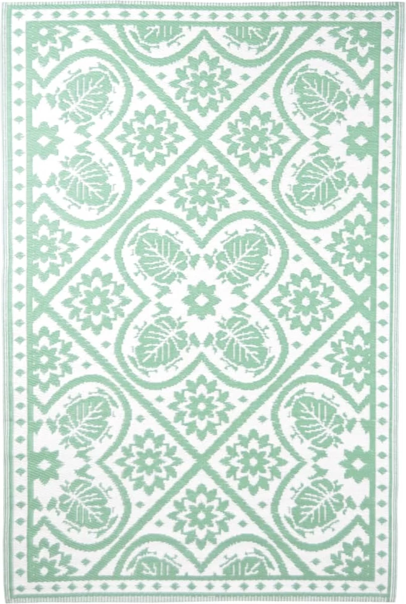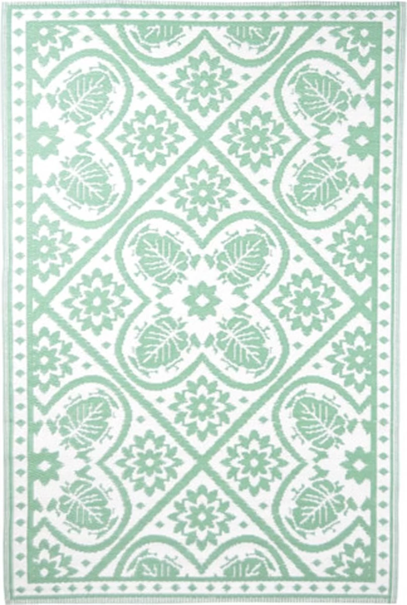 Bovendien is dit buitenkleed dubbelzijdig geweven. Zo kun je gemakkelijk van kant wisselen voor een iets andere print en is het kleed eigenlijk 2 kleden in één!