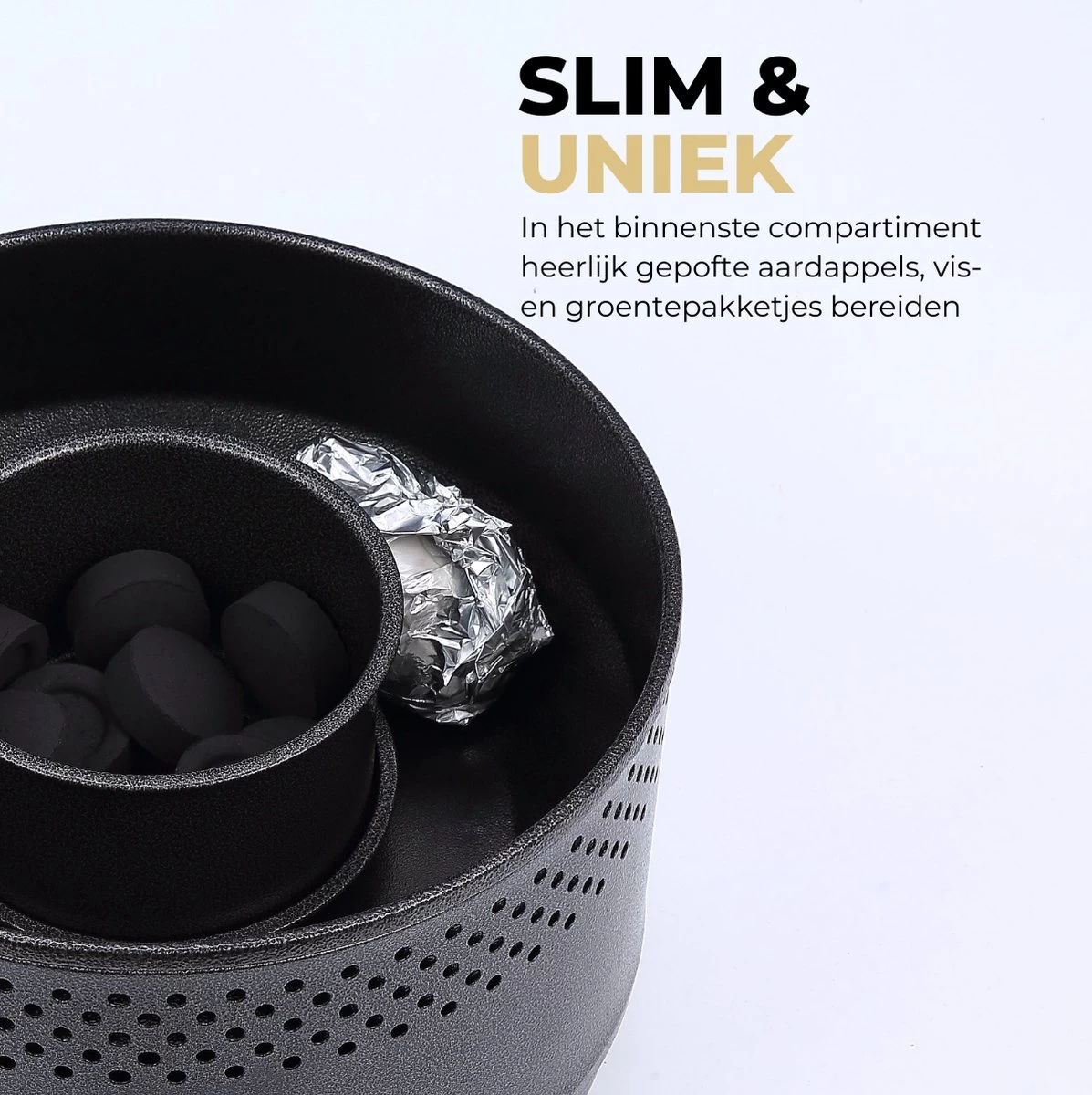 - Uniek: In de binnenruimte kan ook zoete aardappel, mais, groente of vis stomen.