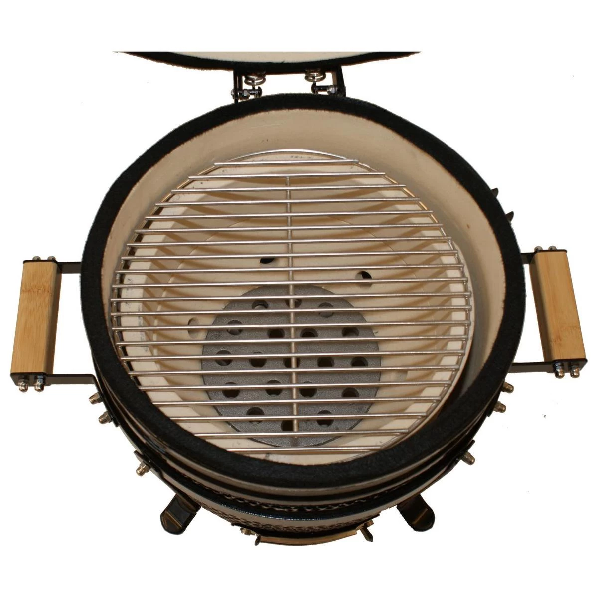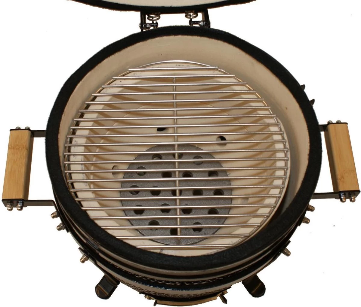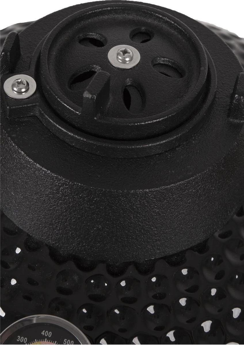 Naast aflezen, is de temperatuur ook eenvoudig te controleren en te regelen door de combinatie van het ventilatierooster aan de onderzijde met de magrietschijf/top vent aan de bovenzijde. Ook aan het grillrooster is gedacht, deze heeft een scharnierend deel zodat je makkelijk houtskool kunt toevoegen. De Premium Kamado is gemaakt van hoogwaardig, geglazuurd industrieel keramiek, dit is bestand voor temperaturen tot zoβn 1000 graden Celsius.