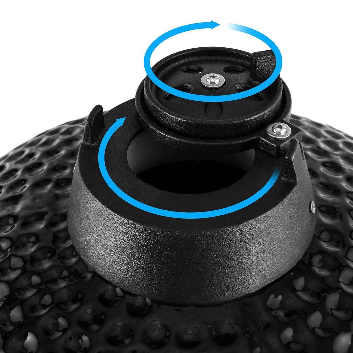 β’ Dankzij de keramische schaal en gecontroleerde luchtstroom wordt het vlees of ander gerecht sappiger en malser dan in welke andere stalen barbecue ook !