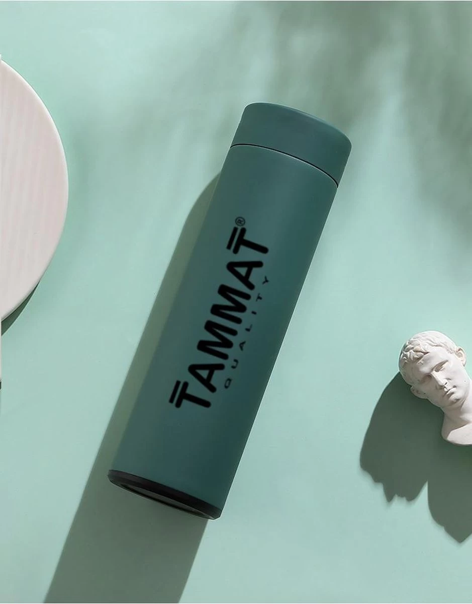 Deze slimme Thermosfles van 500 ML met temperatuur display is nieuw en trendy! Ons nieuwste TammaT Thermosfles heeft een stijlvol design met rubber coating en past perfect bij al je accessoires. Door de slimme temperatuur display, weet je altijd hoe heet en/of koud je drinken is, dat zorgt ervoor dat je nooit meer je mond of tong verbrand. Door roestvrij metaal, rubber coating en dubbelwandige vacuΓΌm, maakt deze slimme rvs drinkfles robuust en duurzaam.