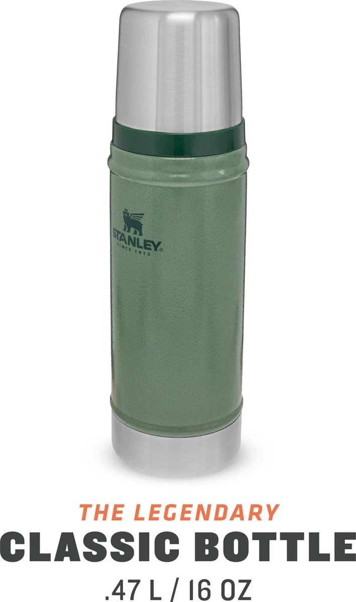 Stanley Classic Legendary Bottle 0.47L / 16OZ Hammertone Green β Thermosfles houdt 15 uur warm of koud | Levenslange garantie | Vaatwasserbestendig | Roestvrijstalen Thermoskan | Lekvrij | BPA-vrij