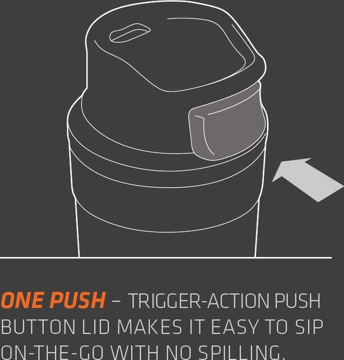 LEKBESTENDIG: Het deksel met de speciaal ontworpen ’trigger-action button’ maakt deze thermoskan volledig morsbestendig en gemakkelijk te gebruiken met één hand. Het deksel is ontworpen met een drukknop, waarmee het mondstuk aan de bovenkant wordt geopend. Deze unieke eigenschap maakt deze Stanley reisbeker perfect voor onderweg.
