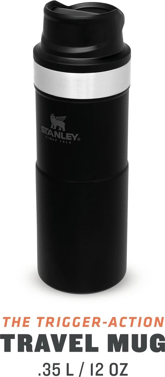 Stanley Trigger Action Travel Mug 0.35L / 12OZ Matt Blackβ Lekvrij | VacuΓΌm geΓ―soleerde thee en koffie reismok | BPA-vrij | Roestvrijstalen thermosbeker | Vaatwasserbestendig